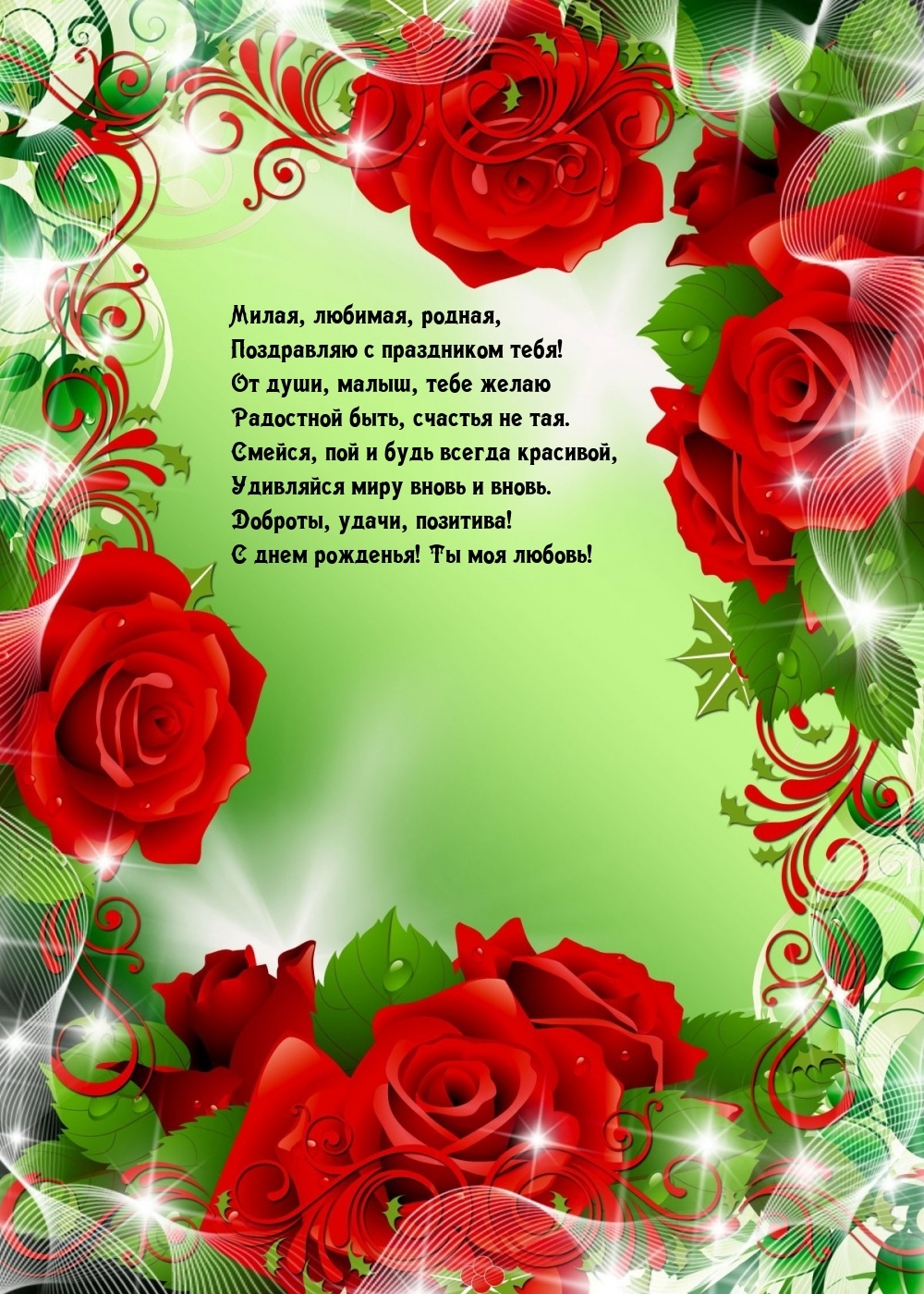 Ты моя красивая, самая родная, умная, любимая, очень дорогая.